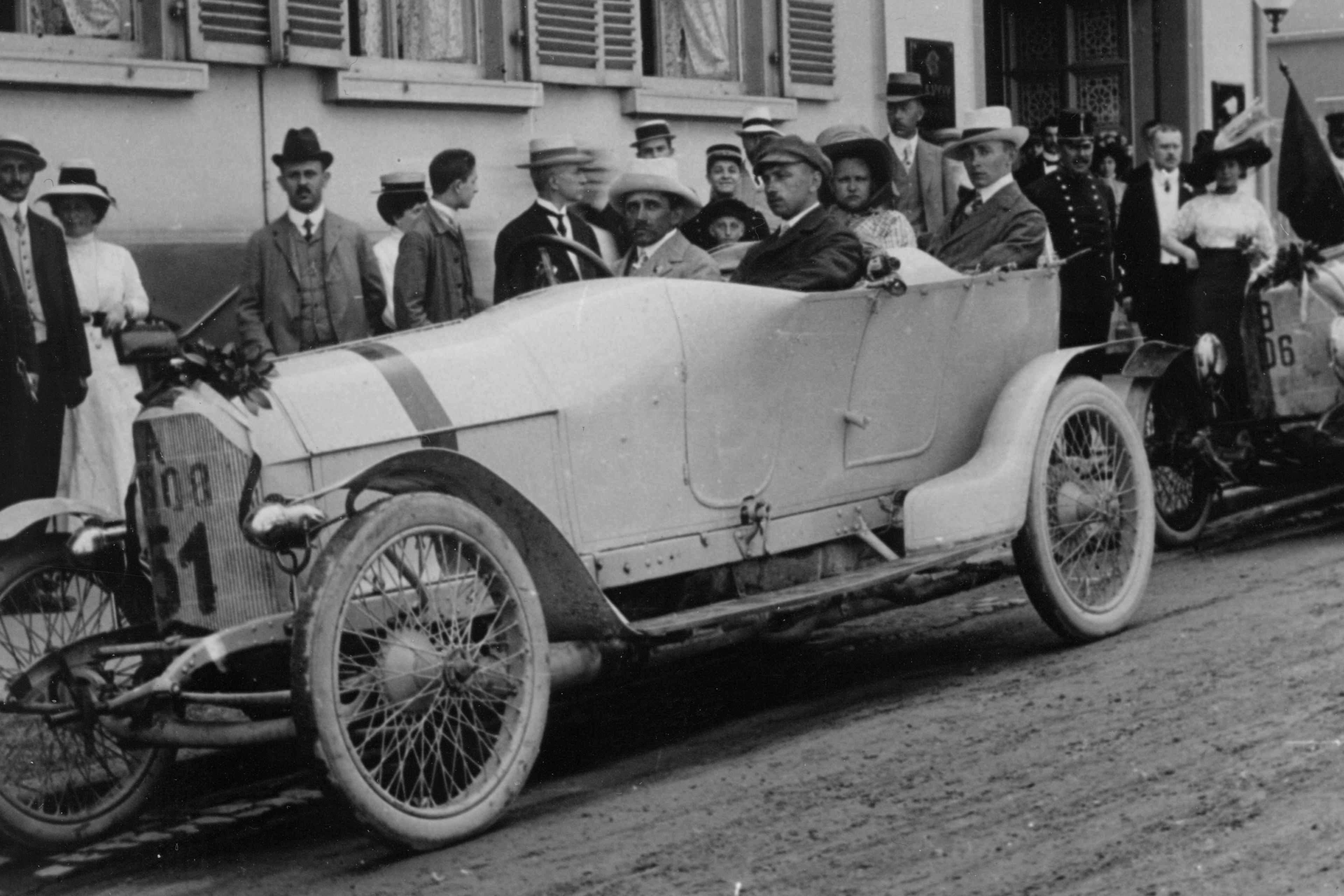 After the First World War, Ferdinand Porsche built the first two-seater sports car, the “Sascha”. In his very first race, he won the famous Targa Florio in Sicily in his class even prevailing against competitors with a larger engine capacity.