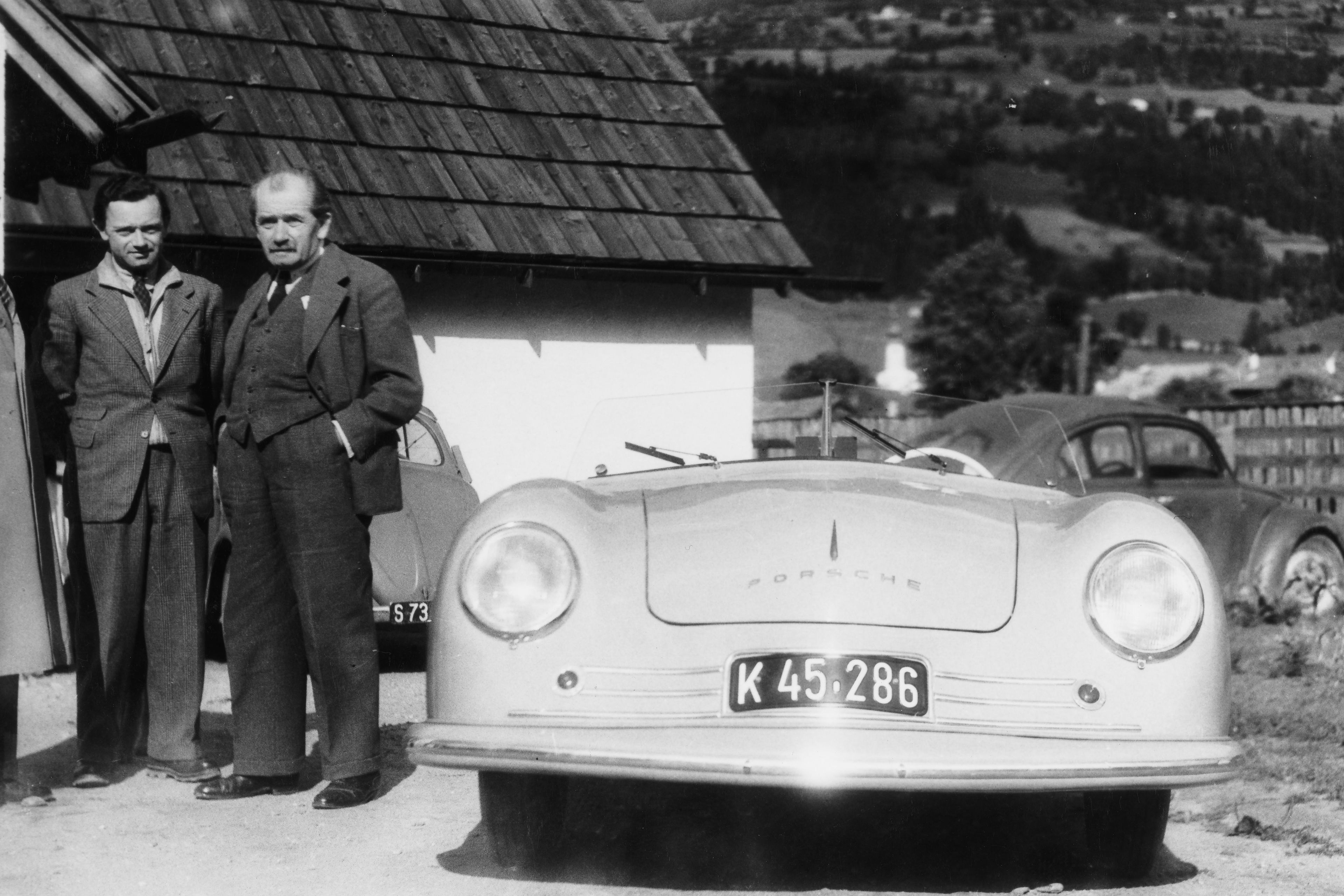 The first Porsche: Ferry Porsche fulfilled a long-cherished dream in 1948 in Carinthia’s Malta Valley when he developed the first sports car to bear the Porsche name. It was based on the VW Beetle. The vehicle presented under the design number 356 established the reputation of the Porsche brand which later became legendary. Vehicle No. 1 still used a mid-mounted engine, whereas subsequent coupés built by hand in Gmünd already had a rear engine. Around a dozen Porsche 356 cabriolets were built in the Salzburg workshops on Alpenstraße.